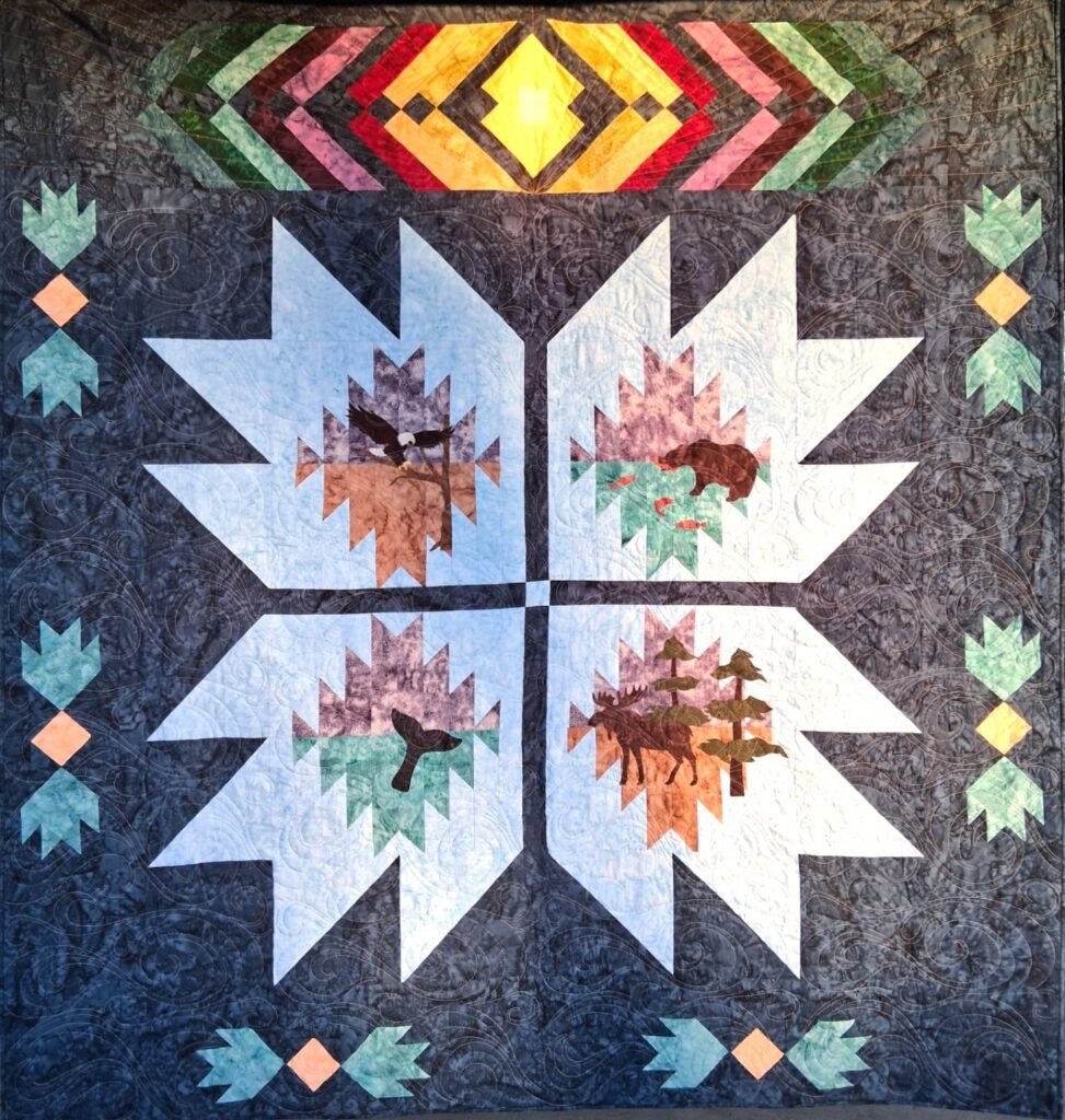 This 84″ x 92″ quilt was designed specifically for this amazing adventure Cruise and uses all Batik fabrics, piecing and fusible applique.  Featuring my favorite bear paw block and some native to Alaska animals, we will embark on an adventure to create our quilts with a flair. The camaraderie and love of all things quilting are why we are here and the time spent creating and enjoying the cruise itself will make this a memorable keepsake. The mountains, ocean, night sky and animals will remind you for years to come how much fun we had on this excursion. Check this one off your bucket list!