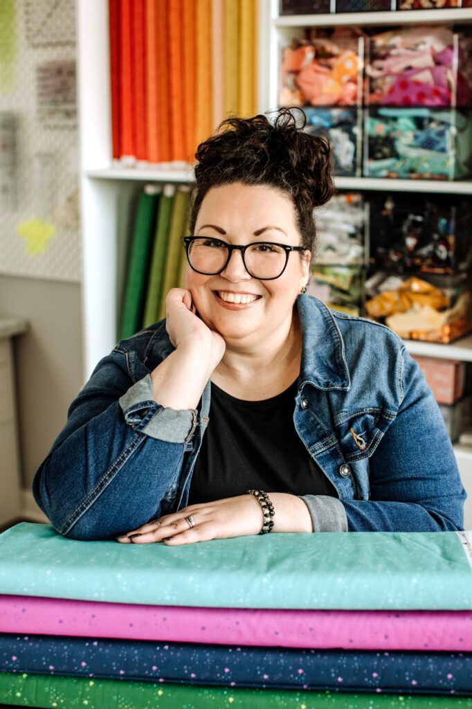 Pamela Jane Morgan, aka Pammie Jane, is an illustrator, quilting author, and quilt pattern designer. She designs colorful, modern collections for Dear Stella Fabric – most notably, the popular Kitty Litter basics. Her work has been featured in magazines, books, and quilt shops worldwide. Most recently, she was featured in Quiltfolk: Cats. She resides in eastern PA with her husband, four children, and enough pets to start a zoo.