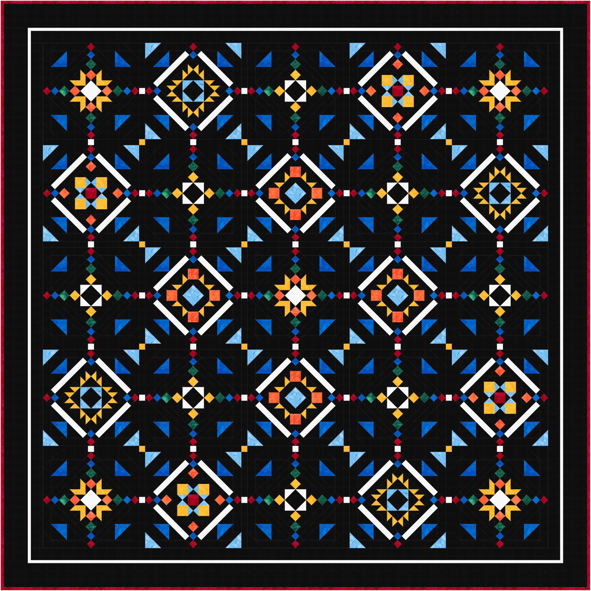 While the visual language draws inspiration from northern beadwork, the design itself is an original composition—celebrating color, geometry, and storytelling through quilting. Quilters will use time-saving techniques such as strip piecing and stitch-and-flip construction to make quick work of the intricate layout.