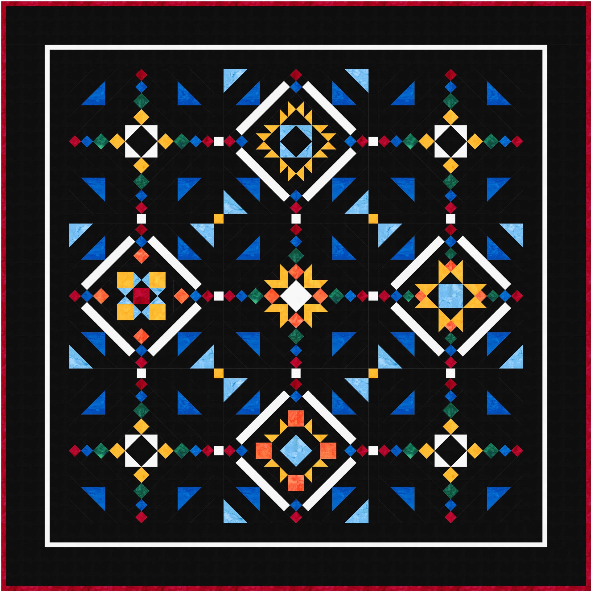 While the visual language draws inspiration from northern beadwork, the design itself is an original composition—celebrating color, geometry, and storytelling through quilting. Quilters will use time-saving techniques such as strip piecing and stitch-and-flip construction to make quick work of the intricate layout.
